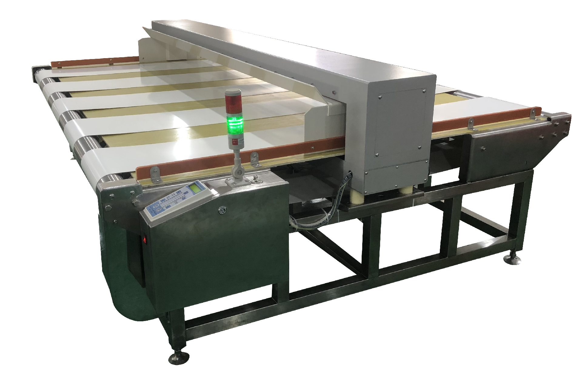 此款检针机适用于羽绒制品,床上用品等大型宽厚检检测。电脑板芯片日本进口,输送带荷兰进口,使本机器具有极高稳定性、耐用性。检测到断针,声、光,双重同时报警,输送带停止并自动返回。
