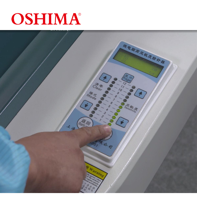 该产品是以“OSHIMA”为注册商标,采用美国微电脑芯片,正装进口传感器,瑞士哈伯西特工业输送带,台湾阳明牌光电开关等进口元件。此机探测部位特殊的感应设计,极大的提高了仪器的灵敏度及抗干扰能力,打破了受环境影响限制,且对电风扇、钥匙等具有明显的抵抗能力。该机还具有特别高的灵敏度及检测能力,人性化操作,简捷方便,检测范围广泛,可锁设定灵敏度;适合各种产品的使用。